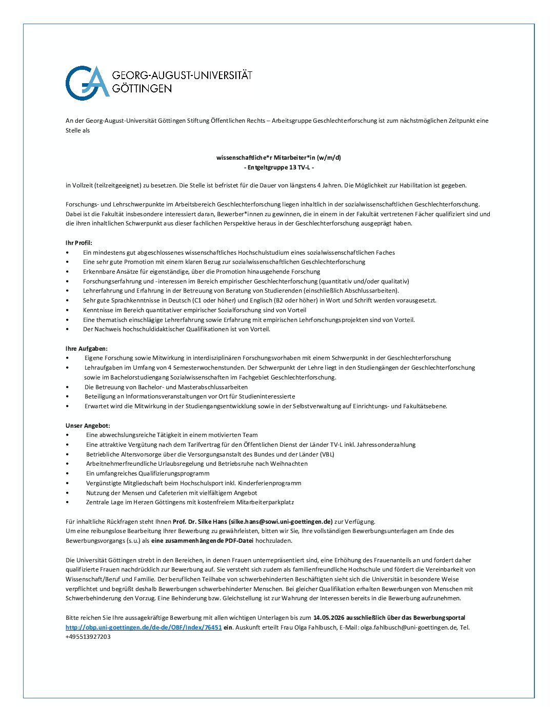 Wir freuen uns über Bewerbungen bis zum 14.05.26. Alle Infos im Dokument und unter: https://www.uni-goettingen.de/de/644546.html?details=76451