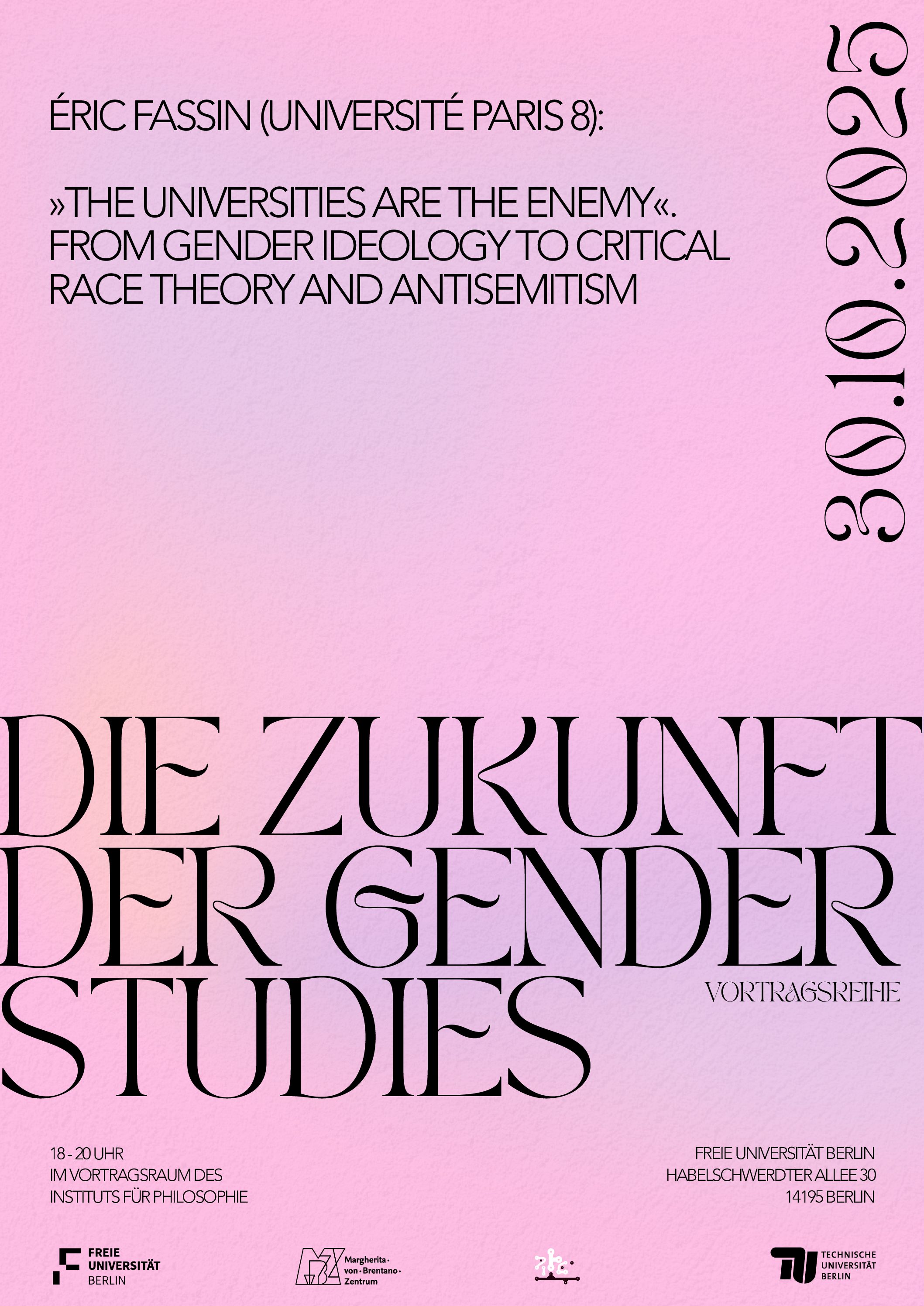 Die Vortragsreihe wird vom Margherita-von-Brentano-Zentrum der Freien Universität Berlin in Zusammenarbeit mit dem Zentrum für Interdisziplinäre Frauen- und Geschlechterforschung der Technischen Universität Berlin organisiert. Die Reihe zielt darauf, die aktuellen Herausforderungen der Gender Studies im Rahmen der (geo)politischen, sozio-ökonomischen und ökologischen Krisen der Gegenwart zu diskutieren und Möglichkeiten kritischer Intervention auszuloten.